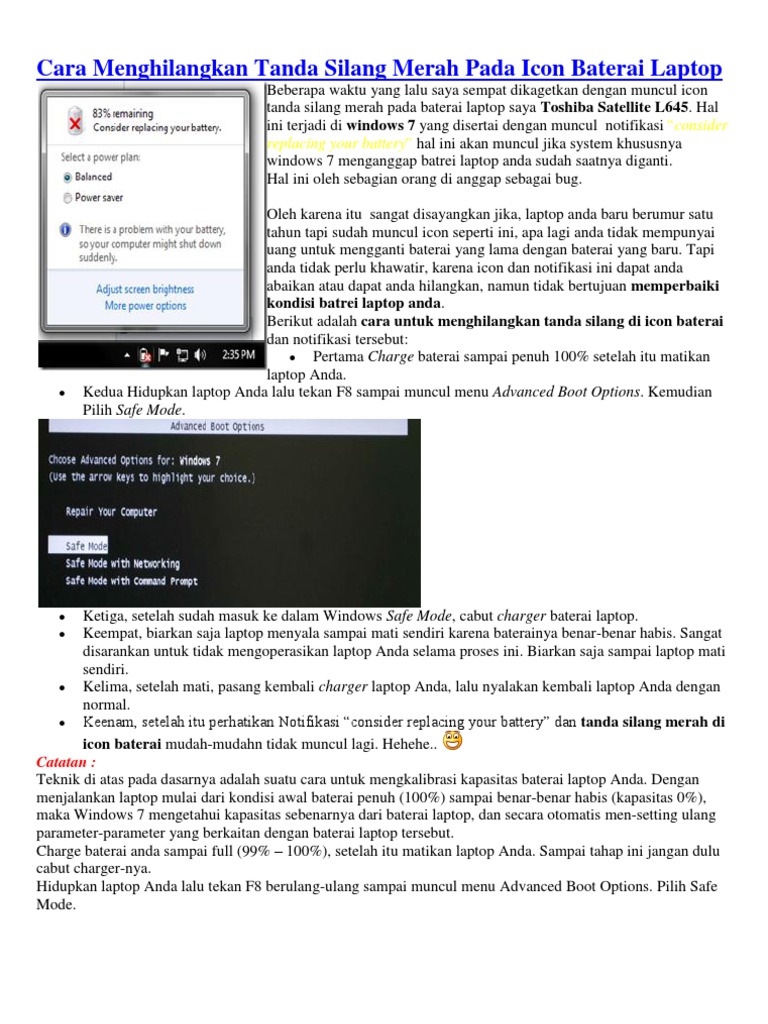 √ Cara Mengatasi Baterai Laptop Di Silang Merah ( Berhasil ) from www.artanesia.com Cara mengatasi wifi tanda silang merah di windows 7, 8, 10. Mengatasi dan menghilangkan consider replacing your battery pada windows 7. Cara mengatasi wifi silang merah di windows 7, 8 dan 10jenis pc windows 7,8,10 kadang sering error' dalam menjalankan wifi/menangkap sinyal wifi dikarenakan. Namun kita tidak perlu untuk terlalu mencemaskan masalah koneksi wifi pada laptop yang hilang secara mendadak tersebut. Download aplikasi battery basic dan install. Padahal ada kebutuhan mendadak dan mendesak untuk segera… Terkadang, tanpa disadari tanda silang merah pada wifi laptop diakibatkan oleh sambungan wireless yang tidak stabil atau adanya gangguan. Beberapa waktu yang lalu, ada seorang sobat blogger yang bertanya pada napetis mengenai munculnya pesan consider replacing your battery disertai dengan tanda silang merah pada battery icon di sistem tray laptopnya.